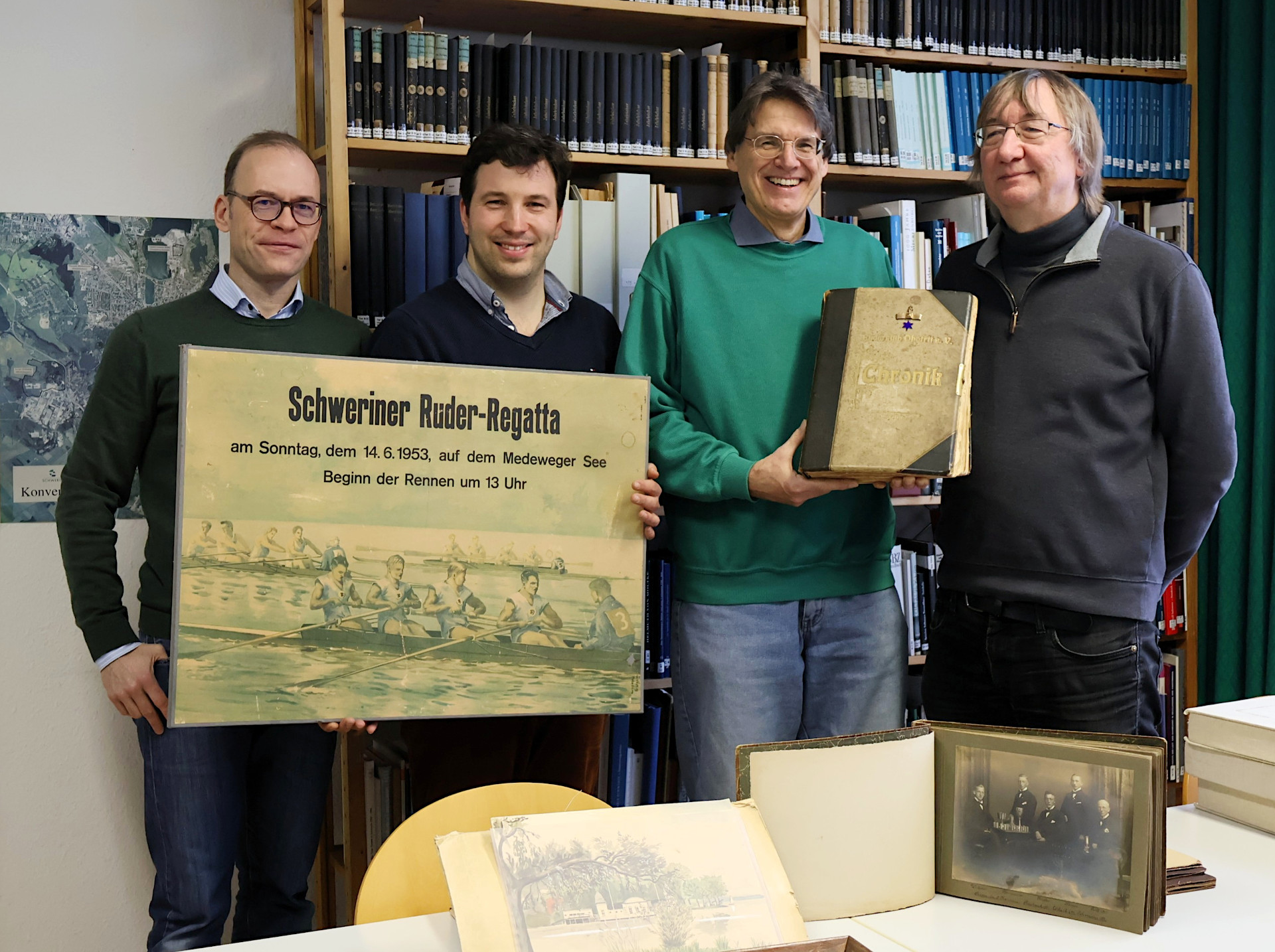 Das Stadtarchiv der Landeshauptstadt ist um bedeutende Dokumente zur Geschichte des Rudersports in Schwerin reicher. Die Schweriner Rudergesellschafft hat einen Großteil ihrer historischen Quellen zur Vereinsgeschichte dem Stadtarchiv als Dauerleihgabe übergeben. „Rudern ist ein wichtiger Teil der Stadtgeschichte“, sagt Stadtarchivar Dr. Bernd Kasten. „Seit über 150 Jahren wird auf den Schweriner Seen kontinuierlich Rudersport betrieben. Die Herzogliche Familie gehörte zu den starken Förderern.“