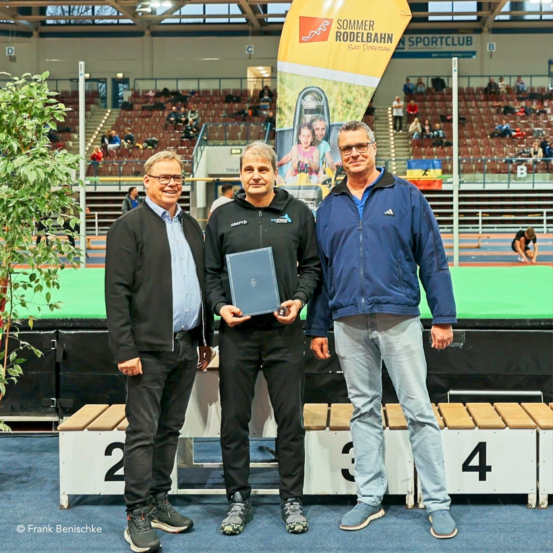 Im Rahmendes Landeshallenmeisterschaften wurde Jan Seemann (TC Fiko Rostock) insbesondere für seine rund zehnjährige, erfolgreiche ehrenamtliche Trainertätigkeit im Nachwuchsleistungssport, aber auch für sein Engagement als Vorsitzender der AG Laufcup des Landesverbandes mit der Ehrennadel des LVMV in Silber geehrt!
