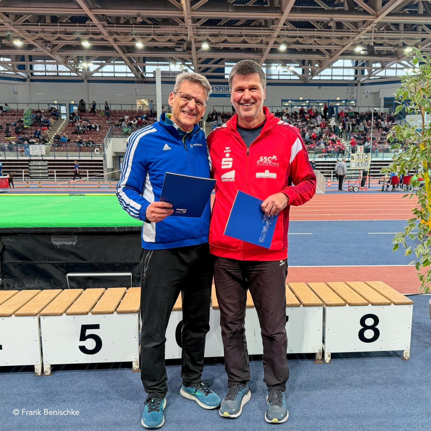 Der Leichtathletik-Verband Mecklenburg-Vorpommern ehrte im Rahmen der Landeshallenmeisterschaften zwei verdienstvolle, langjährige Mitstreiter in der Leichtathletik: