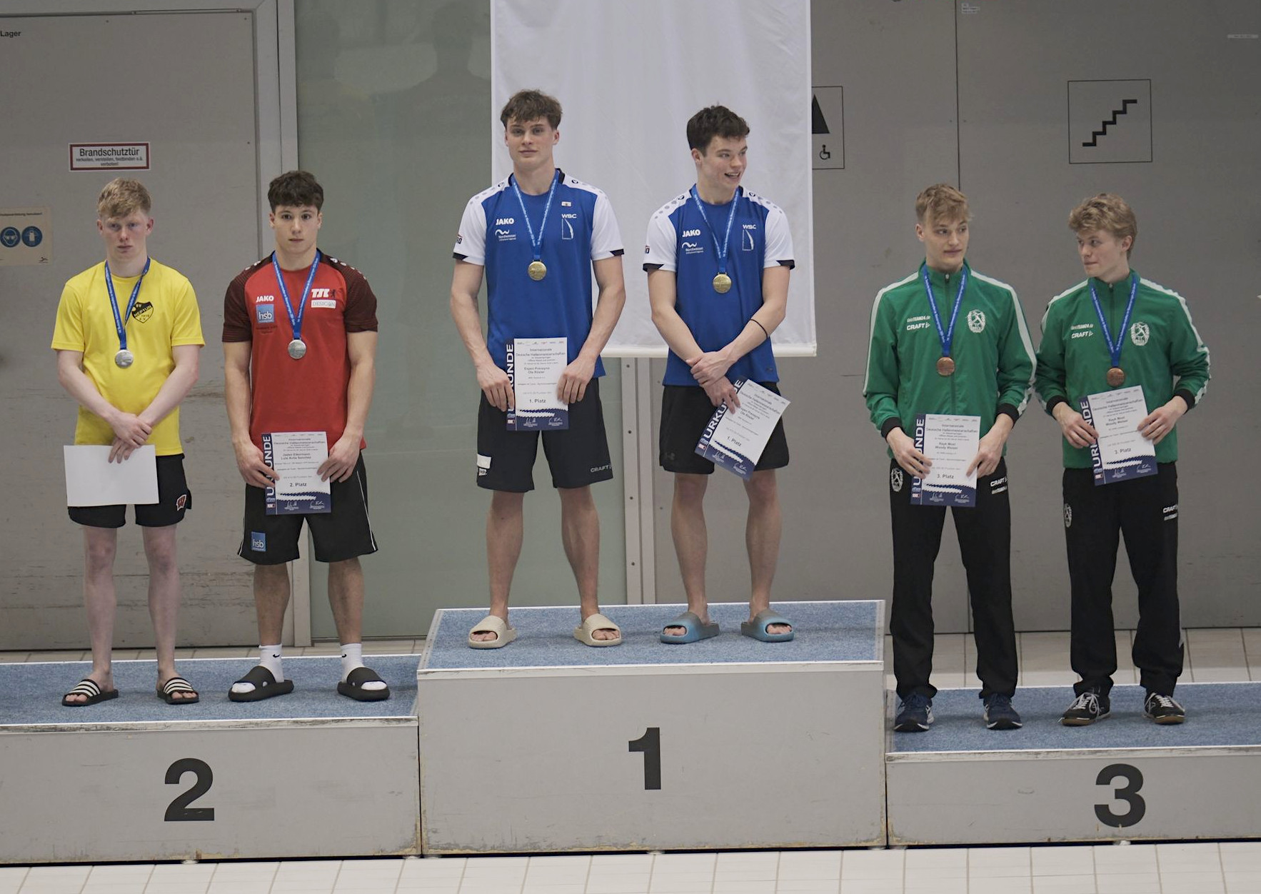 Unsere erfolgshungrigen Sportlerinnen und Sportler sowie das Trainerteam können mit Stolz auf ein äußerst erfolgreiches Wettkampfwochenende bei den Offenen Internationalen Deutschen Wintermeisterschaften im Wasserspringen in Berlin zurückblicken. Jella Kiphut, Aliana, Zoé, Finn Awe, Emily Steinhagen, Mahi Gruchow, Espen Prenzyna und Ole Rösler sicherten sich gemeinsam mit den Coaches Lukas Orlowski und Michail Sachiasvili, sowie Slava Khamulkin insgesamt acht Medaillen, zahlreiche Normerfüllungen sowie Empfehlungen für internationale Wettbewerbe. Darüber hinaus beeindruckte das Team mit mehreren Weltklasse-Sprüngen – ein weiteres starkes Zeichen für die hervorragende Teamarbeit.