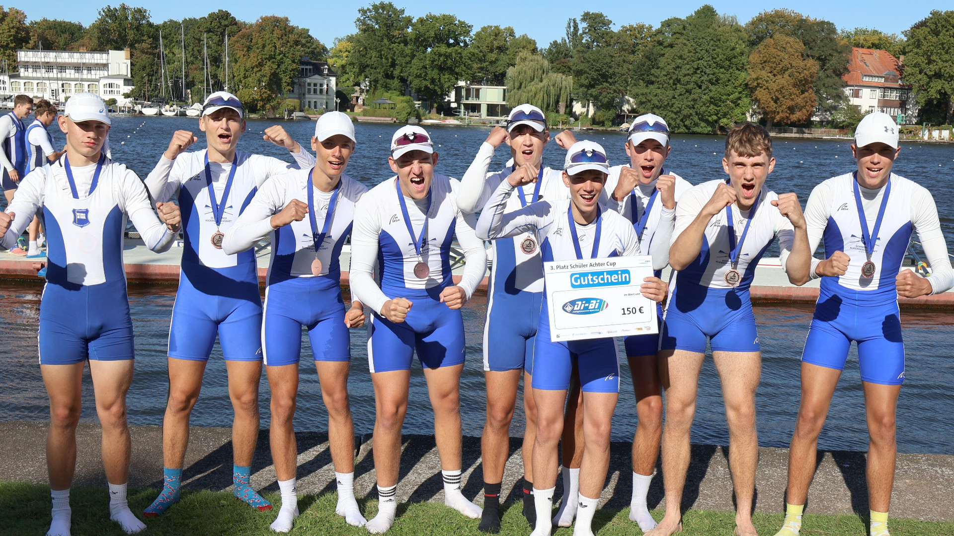 „Die Liste der Erfolge des Schweriner Sportgymnasiums im Rudern ist länger als das Meldeergebnis“, hallt der Kommentar aus den Lautsprechern auf dem Regattagelände in Berlin-Grünau. Beim Herbstfinale von „Jugend trainiert für Olympia & Paralympics“ in diesem Jahr ist sie noch länger geworden. Die jungen Ruderinnen und Ruderer des Sportgymnasiums Schwerin, die alle Mitglieder der Schweriner Rudergesellschaft sind, holen zweimal Gold und im Schüler-Achter-Cup Bronze. „Wir sind total zufrieden“, bilanziert Trainer René Flaschmann. „Mit den drei Podestplätzen zählt das Sportgymnasium Schwerin in diesem Jahr zu den erfolgreichsten rudernden Schulen Deutschlands. Darauf sind wir sehr stolz.“