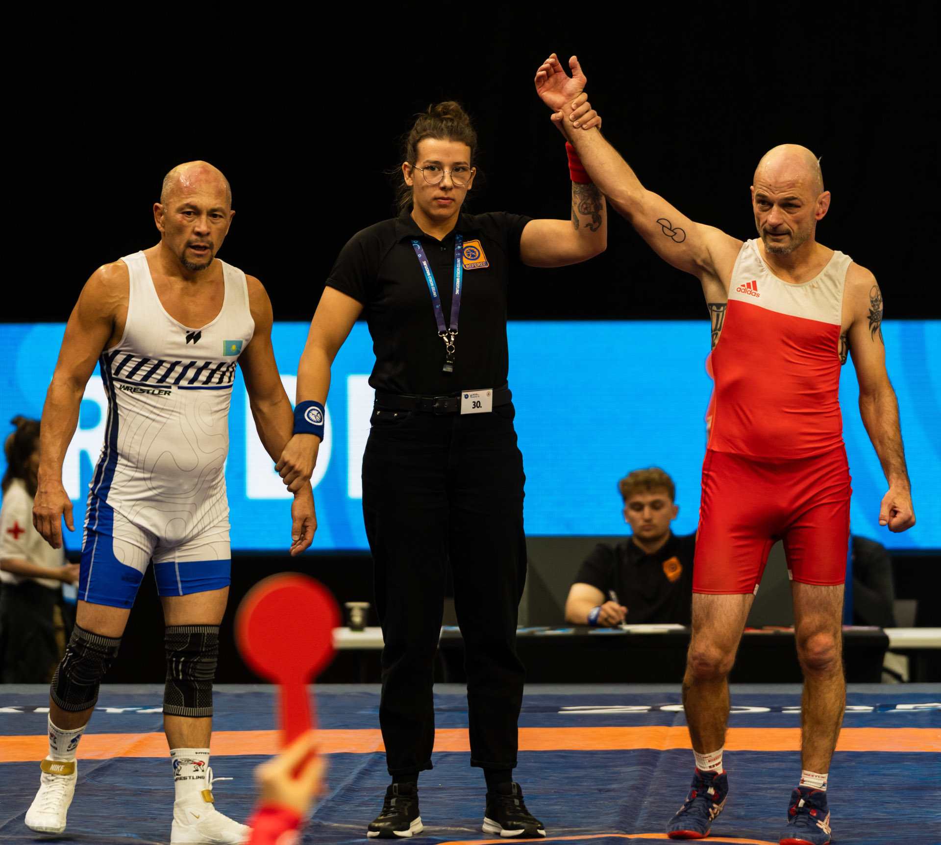 Die diesjährigen Welttitelkämpfe fanden vom 07. – 12. Oktober in der ungarischen Stadt Tatabanya statt. Die Veteranenweltmeisterschaften sind Aktiven vom 35. bis zum 60. Lebensjahr vorbehalten, eingeteilt in fünf Altersklassen, in den Stilarten Freistil und Griechisch-Römisch. Dabei waren drei Teilnehmer vom SV Warnemünde Stefan Pentschew, Dirk Stastny und Gunnar Sprunk, die über Jahre hinweg diverse Titel und Podestplätze bei nationalen und internationalen Titelkämpfen im wahrsten Sinne errungen haben. Stefan, der in der 70-kg-Klasse der Veteranen D im Freistil antrat, bestritt bis zum Finale eine makellose Serie an Kämpfen und besiegte seine Gegner aus Spanien, Georgien und Kasachstan jeweils nach Punkten. Im Finale traf er auf den Türken Semih Ozdemir. In einem Kampf zweier absolut gleichwertiger Gegner wechselte die Führung ständig und kurz vor Ende der Begegnung lag Ozdemir mit einem Punkt vorn. Mit einer wahren Energieleistung konnte Stefan die Partie in letzter Sekunde drehen – wähnte sich bereits als Weltmeister. Allerdings gab es einen Protest, von der türkischen Seite, dem nach der Videoauswertung stattgegeben wurde. Somit wurde Stefan Vizeweltmeister.