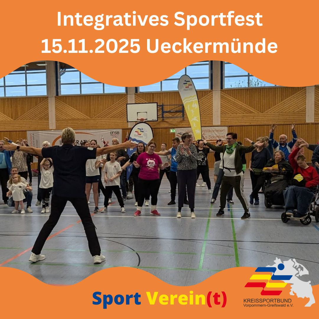 Teilhabe am gesellschaftlichen Leben durch Sport, Spiel und Spaß, so lautet das Ziel des „Integrativen Sportfestes – Sport für Jedermann“ am 15.11.2025 in der Sporthalle des Ueckermünder Greifen-Gymnasiums (Apfelallee 2, 17373 Ueckermünde).